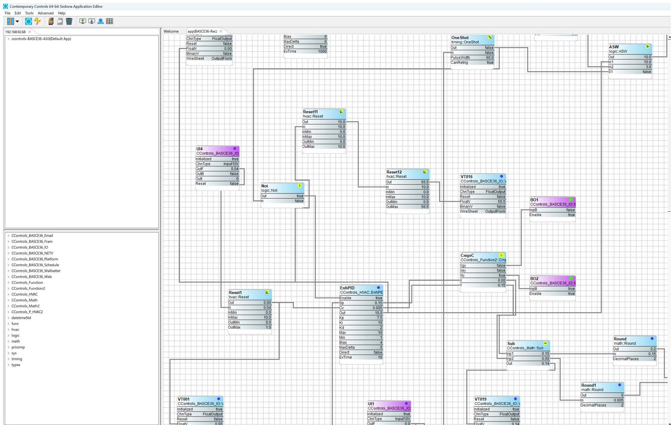 Figure 4: Sedona programming with enhanced PID instruction and other instructions using the Sedona Application Editor (SAE)
